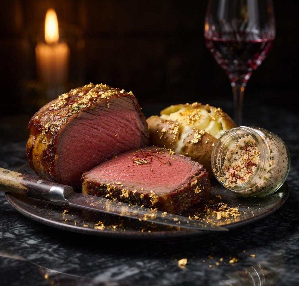 The perfect All-Purpose Seasoning enhanced with 24 kt gold flakes (edible) and Spanish Saffron combined with Garlic, Onion and other premium spices that delivers a impactful flavor and statement.