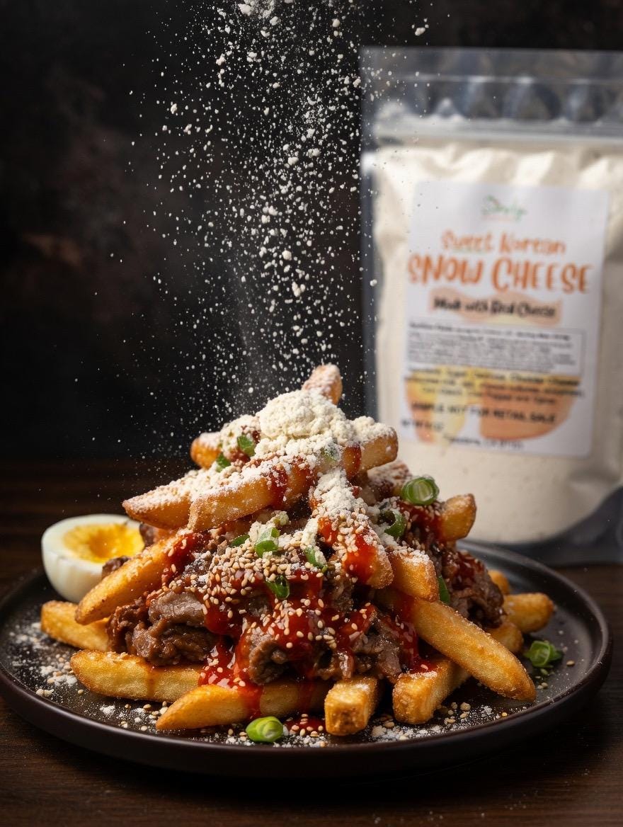 Experience the unique flavor of Sweet Korean Snow Cheese Powder! Perfect for enhancing snacks, fries, popcorn, fried chicken, and more with a creamy, slightly sweet twist. Elevate your favorite foods with this popular Korean seasoning powder--perfect for food lovers and culinary adventures.